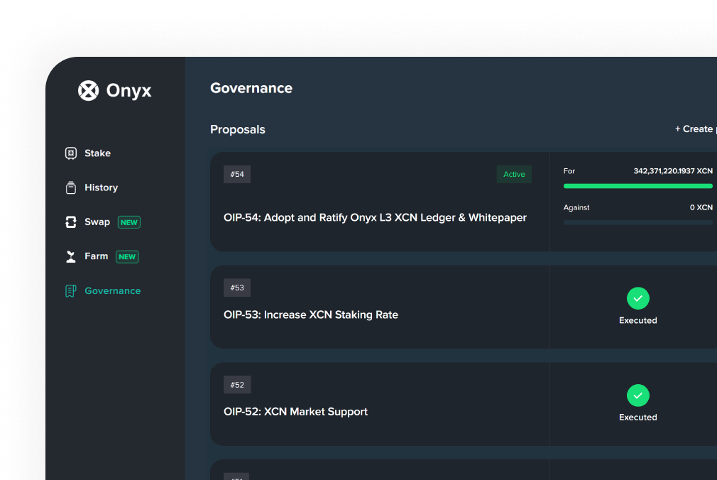 Decentralized Governance, powered by XCN and deployed on the Ethereum blockchain, governs all economic staking activity and community voting.